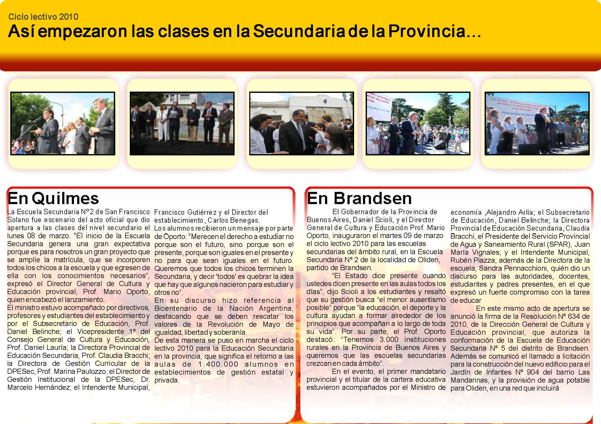 Este año 2010 avanzaremos en el trabajo conjunto, para acompañar en cada escuela y en cada aula el proceso de