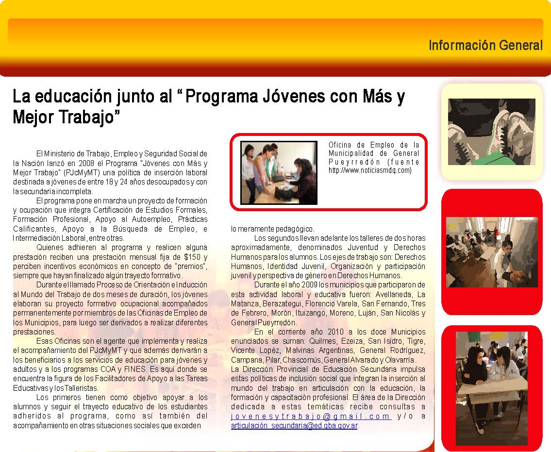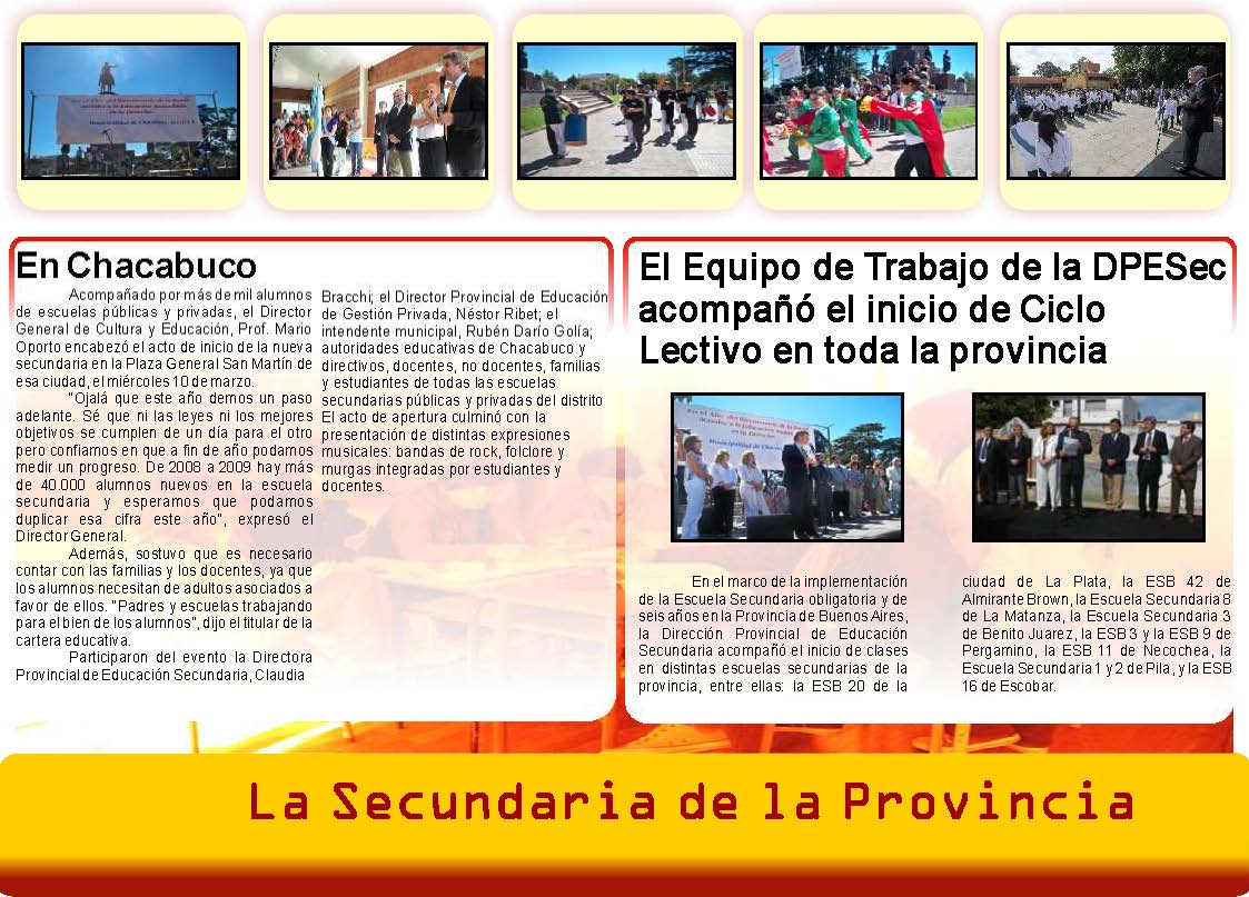 de Educación, y en ese sentido iniciamos el proceso de conformación de la escuela secundaria obligatoria. Durante el año 2009