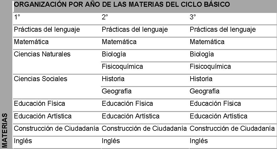 Esta organización, y su desarrollo, tanto en el marco general como en los diseños curriculares de cada una de las materias, deciden cuestiones de fundamental importancia que se continúan en los diseños curriculares para el ciclo superior, a saber: