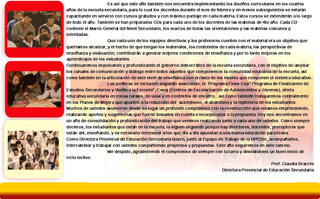 implementación de la secundaria de la provincia. La intención del Equipo de Trabajo de la Dirección Provincial de Educación