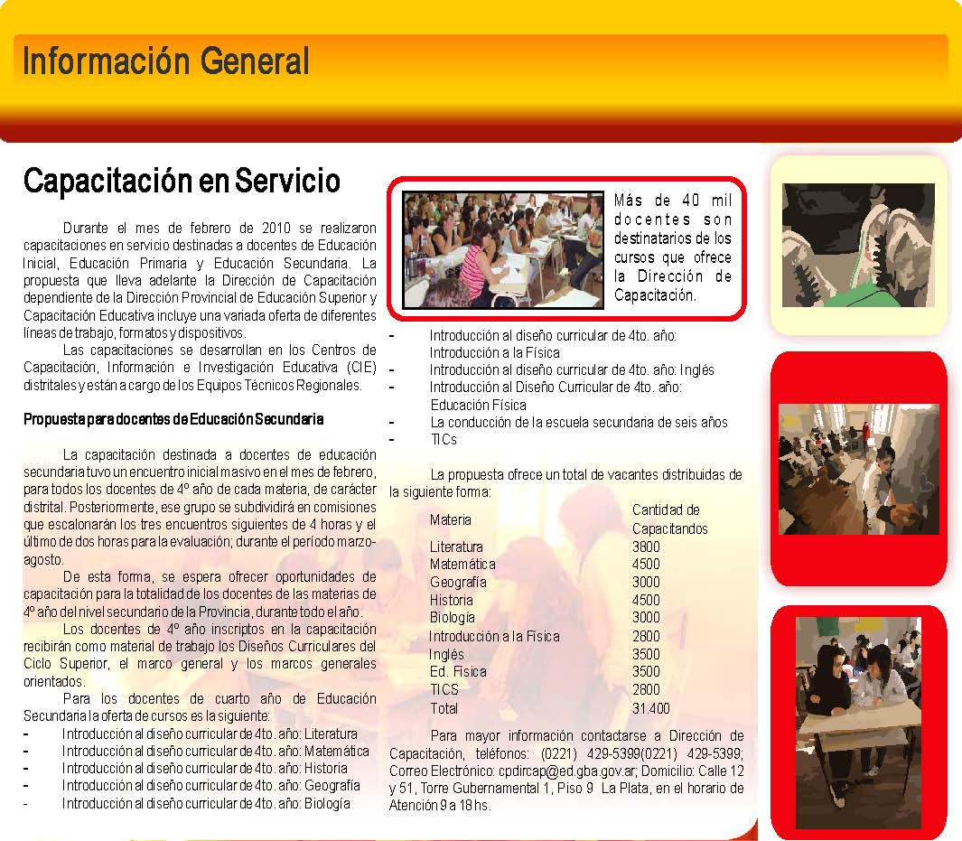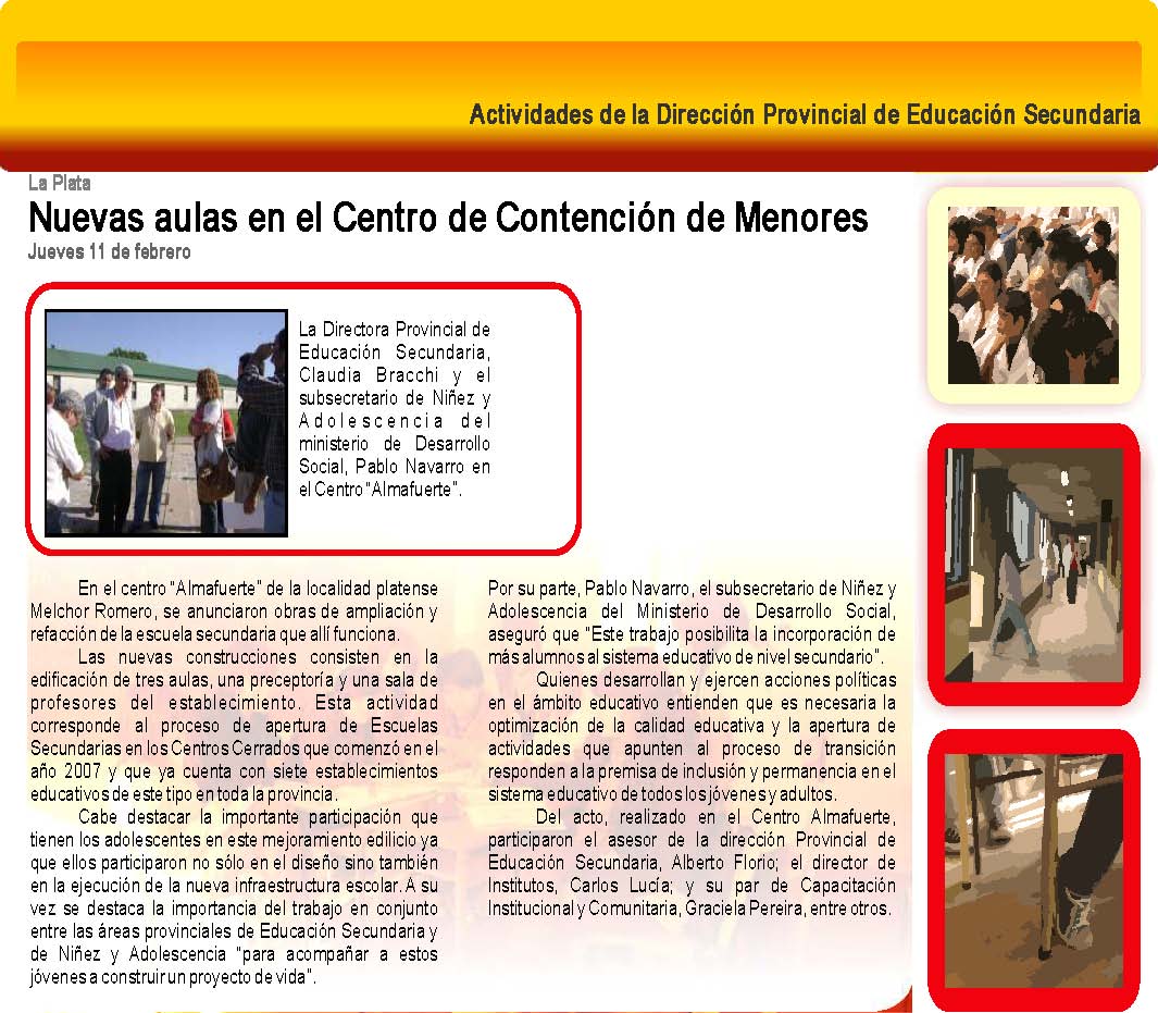 El Director general de Cultura y Educación provincial, Provincia de Buenos Aires acompaña a los docentes Mario Oporto, indicó que "si el combate del dengue tiene en la ofreciendo un sitio web exclusivo destinado a la problemática prevención su principal instrumento, no hay nada mejor que la del dengue en escuela para hacerlo". http://abc.gov.ar/comunidadycultura/dengue/default.cfm . En