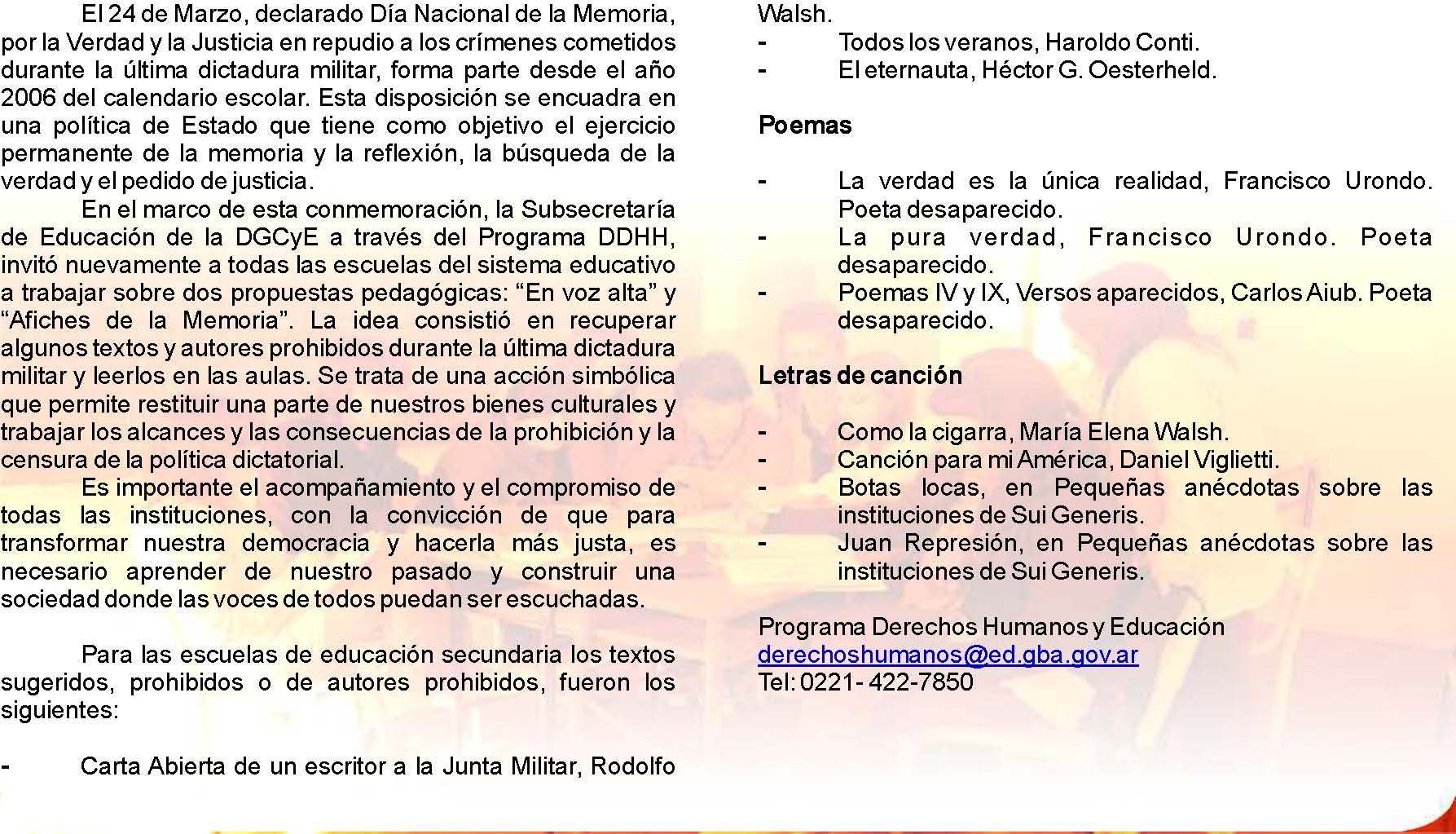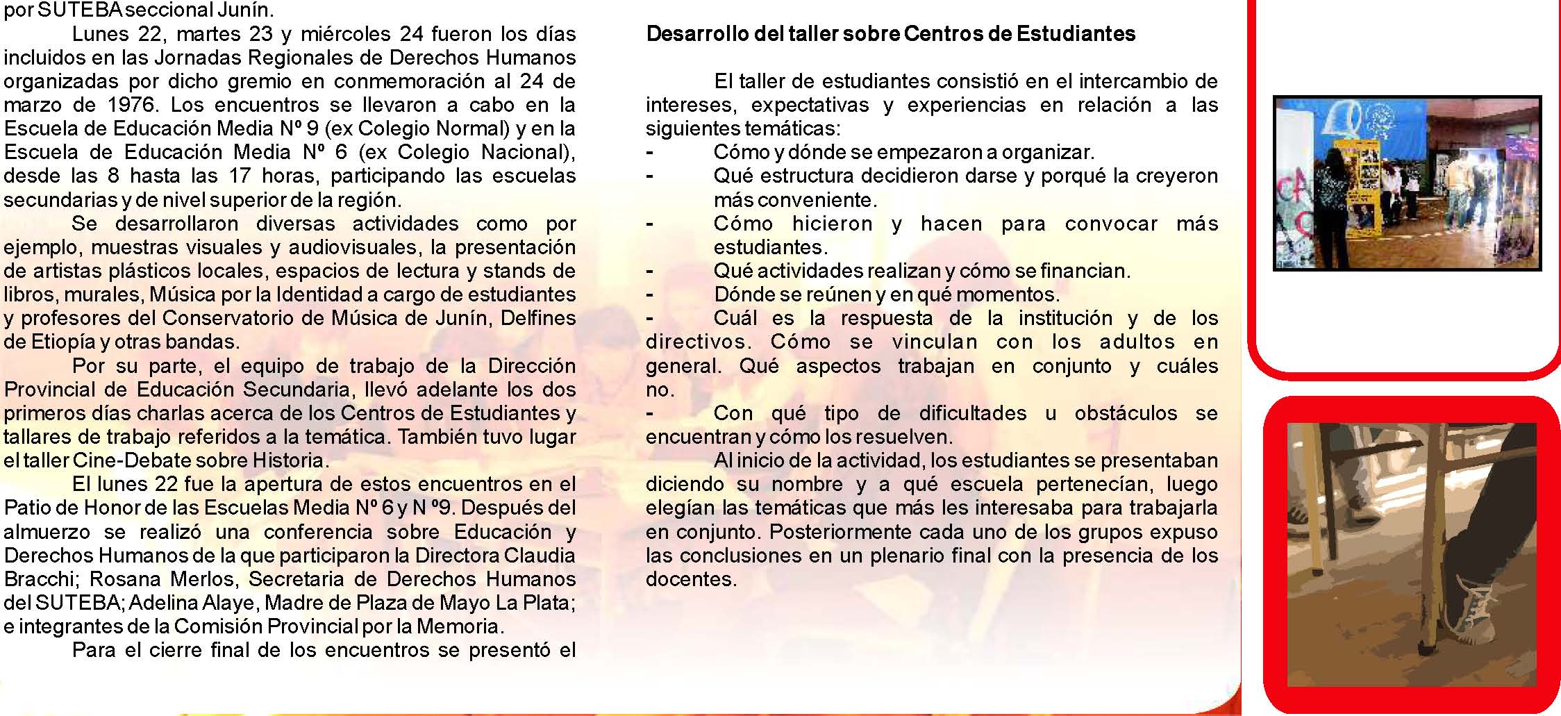 La Directora Provincial de Educación Secundaria, Teatro por la Identidad: Seres Leves, dirigida por Guillermo Claudia Bracchi y la Directora de Gestión Curricular, Marina Mucci y Paulozzo, participaron junto a su equipo de trabajo del Stupeedfactos dirigida por Romina Paesani. encuentro por la Memoria, la Verdad y la Justicia organizado