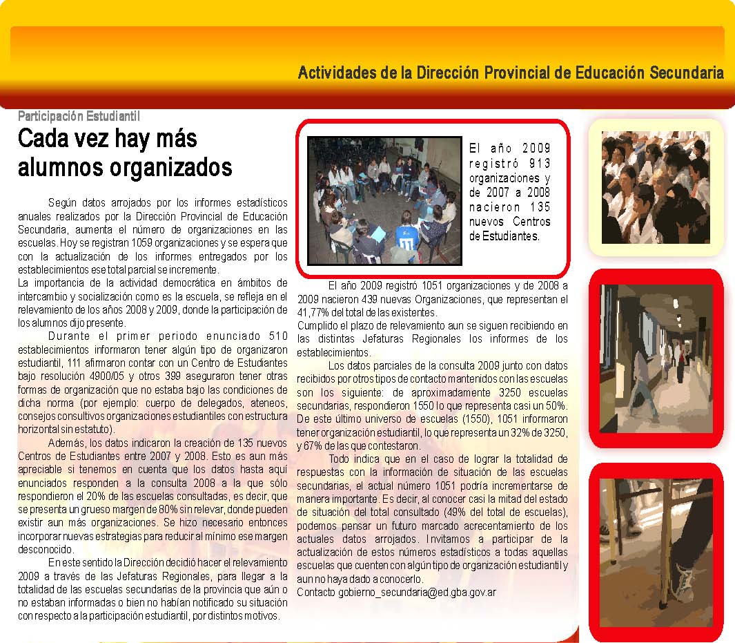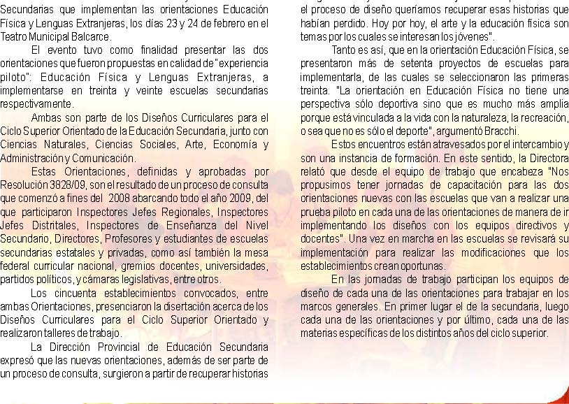 de Educación, y en ese sentido iniciamos el proceso de conformación de la escuela secundaria obligatoria. Durante el año 2009